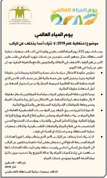 دعت اليوم جمعية حماية المستهلك الفلسطيني الى ضرورة تقاسم العبئ جراء اقتناص الحكومة الإسرائيلية لاموال المقاصة وعدم اقتصار الامر على الموظفين وحسب، وعليه دعت الجمعية سلطة النقد الفلسطينية